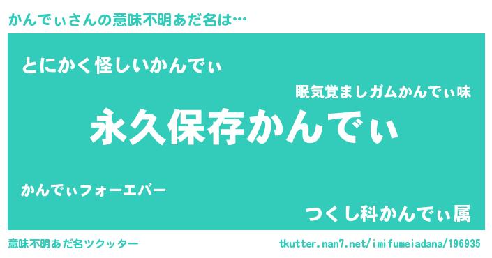 | 男性向けラノベタイトル風あだ名 | 『かんでぃという概念が存在しない退屈な世界 』 |