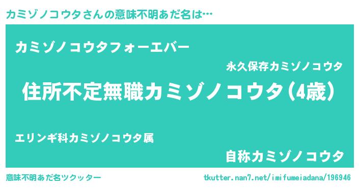| 男性向けラノベタイトル風あだ名 | 『この素晴らしい世界にカミゾノコウタを!』 |