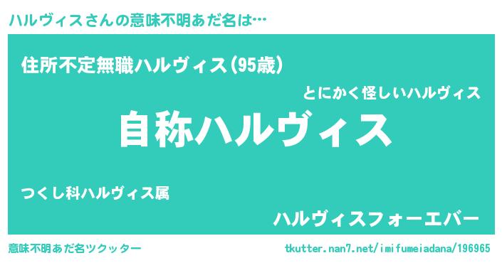 | 女子向けラノベタイトル風あだ名 | 『ハルヴィスなんてお断りですっ。』 |