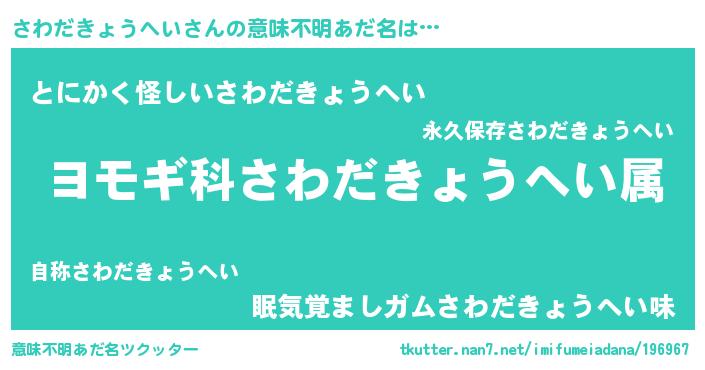 | ポケモン風あだ名 | 『サワキング』『ヒサワダキョウヘイ』 |