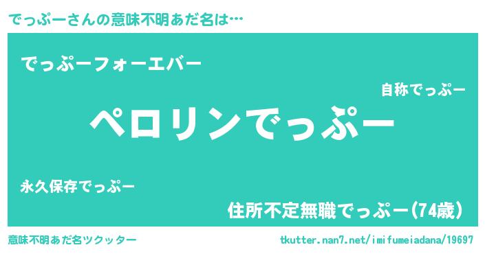 | 男性向けラノベタイトル風あだ名 | 『でっぷーの憂鬱』『魔弾の王とでっぷー』 |