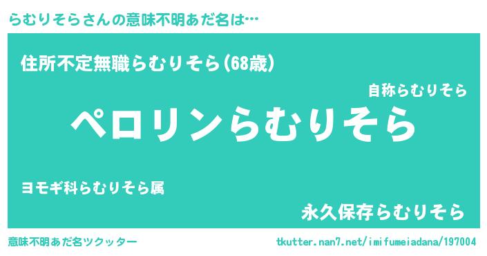 | 男性向けラノベタイトル風あだ名 | 『ラムリソラアートオンライン』 |
