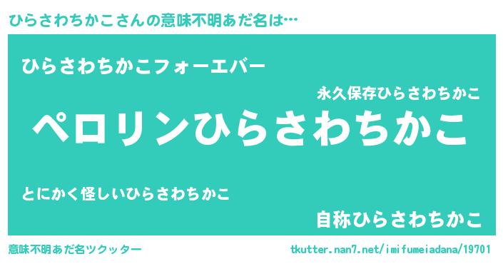 | ヒーロー風カッコイイあだ名 | 『スーパーヒラサワチカコ』 |