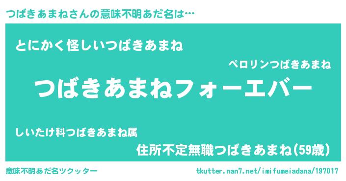 | 欧米人風あだ名 | 『つばきあまねクリステル』 |