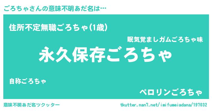| ヘコむあだ名 | 『ごろちゃ(小並感)』『ごろにゅー』 |
