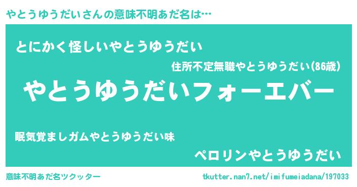 | ファンタジー風あだ名 | 『エターナルヤトウユウダイー』 |