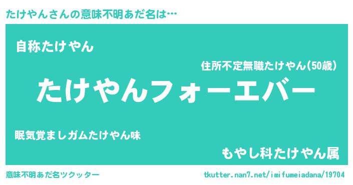 | ファンタジー風あだ名 | 『エターナルタケヤンー』『ゼタケトゥ』 |