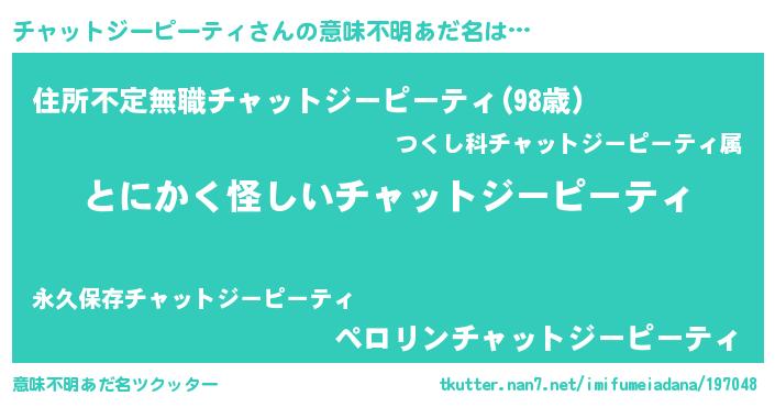 | 伝説のあだ名 | 『解き放たれた遊び人チャットジーピーティ』 |