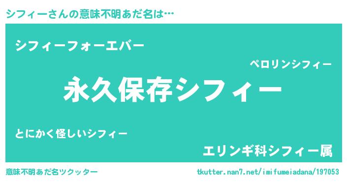 | 男性向けラノベタイトル風あだ名 | 『シフィーという概念が存在しない退屈な世界 』 |