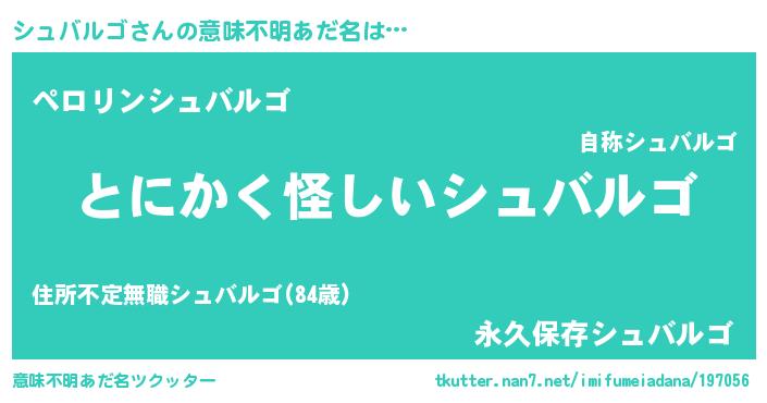 | ポケモン風あだ名 | 『ヒシュバルゴ』『シュチュウ』 |