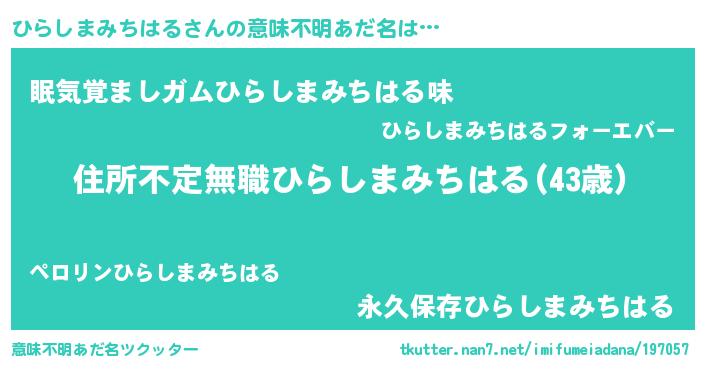 | ヘコむあだ名 | 『ひらしまみちはる(笑)』『レバニラ』 |