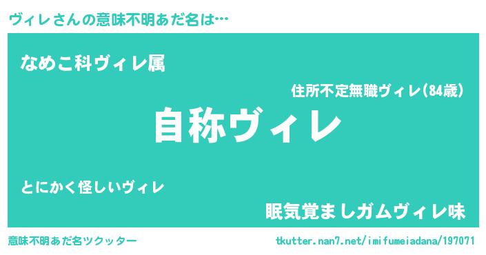 | 恥ずかしいあだ名 | 『ヴィレデラックス』『ヴィリンリン』 |