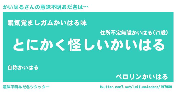 | ヒーロー風カッコイイあだ名 | 『銀牙騎士カイ』『愛の使者かいはる』 |
