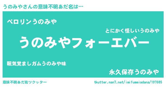 | ファンタジー風あだ名 | 『エターナルウノミヤー』『ウノフェル』 |