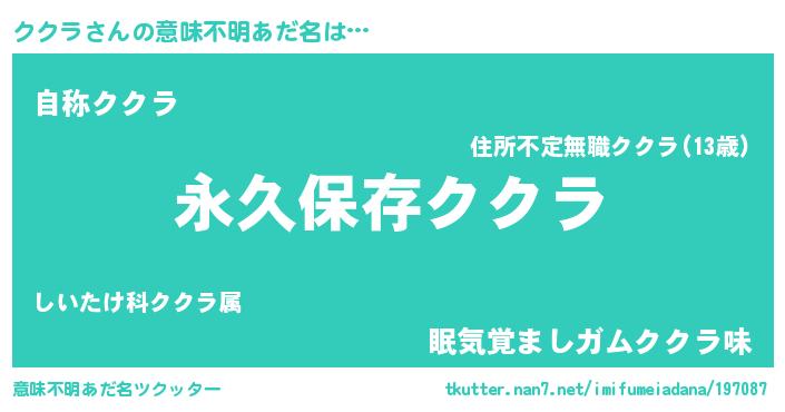 | ヘコむあだ名 | 『ククラ(震え声)』『ククっ子』 |