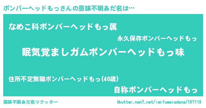 | ヒーロー風カッコイイあだ名 | 『愛の使者ボンバーヘッドもっ』 |