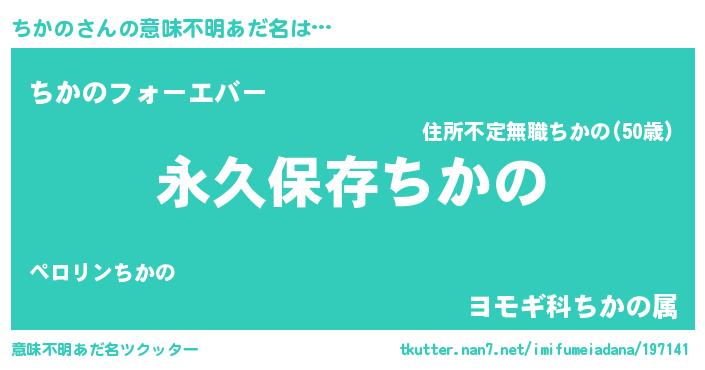 | 欧米人風あだ名 | 『ダルビッシュちかの』『マイケルちかの』 |