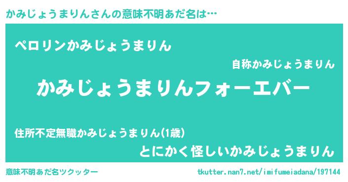 | 肩書あだ名 | 『かみじょうまりん国家主席』 |