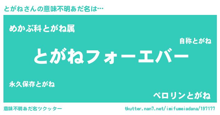 | ポケモン風あだ名 | 『トガゴンZ』『メロトッガ』 |