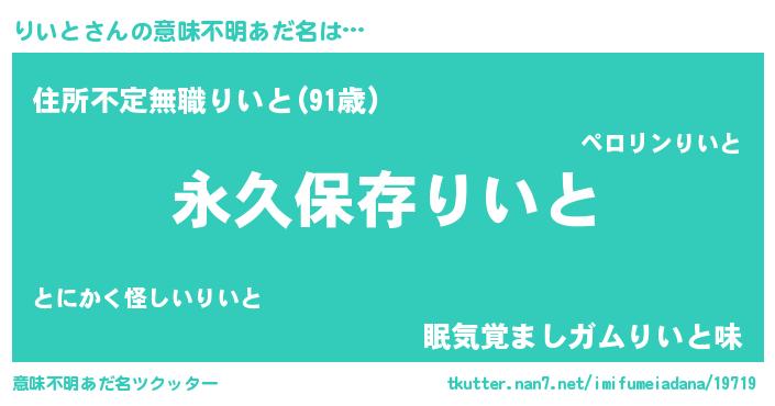 | 男性向けラノベタイトル風あだ名 | 『りいとという概念が存在しない退屈な世界 』 |