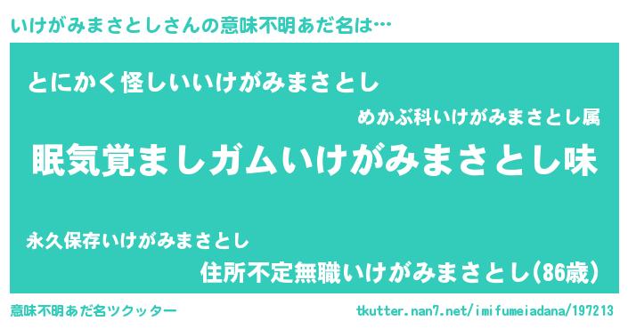 | 胡散臭い通販商品みたいなあだ名 | 『100人中100人が認めた隕石のかけら…その名も「いけがみまさとし」』 |