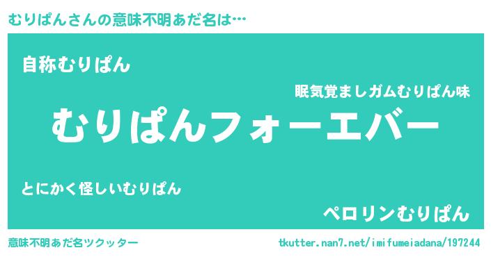 | 欧米人風あだ名 | 『むりぱん・ステッグマイヤー』 |