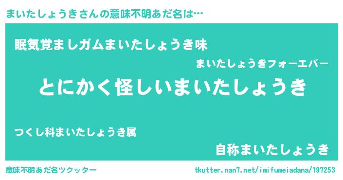 | ヘコむあだ名 | 『まい太郎』『つくし』『まいにゅー』 |