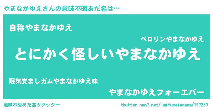 | 欧米人風あだ名 | 『ウサインやまなかゆえ』 |