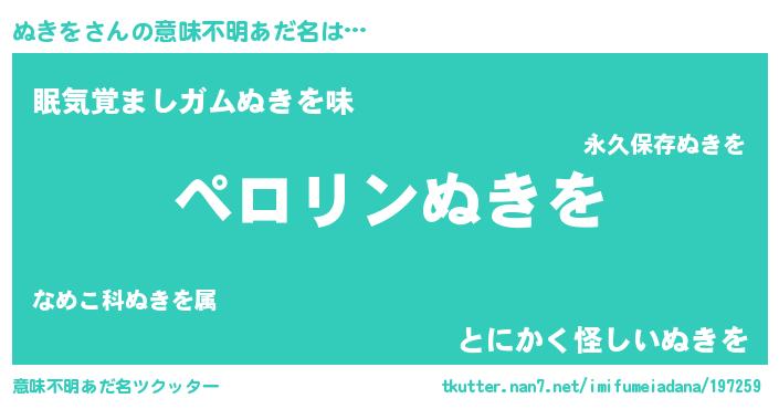 | ヒーロー風カッコイイあだ名 | 『スーパーヌキヲ』『正義の使者ぬきを』 |