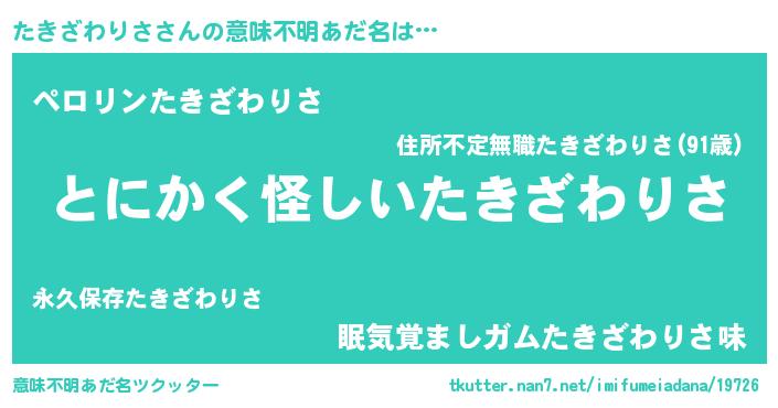 | 女子向けラノベタイトル風あだ名 | 『たきざわりさの卵を拾いまして』 |