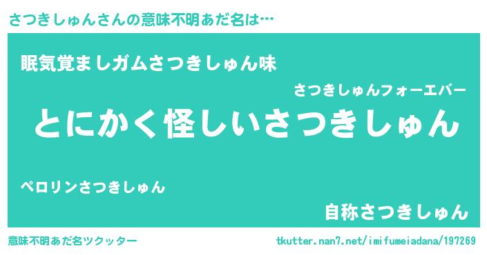 | ポケモン風あだ名 | 『サツゴンZ』『ヒサツキシュン』 |