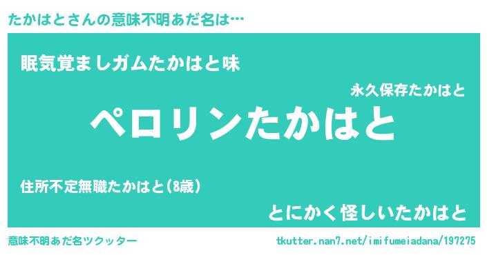 | 胡散臭い通販商品みたいなあだ名 | 『モテモテ間違いなし霊験あらたかなお札…その名も「たかはと」』 |
