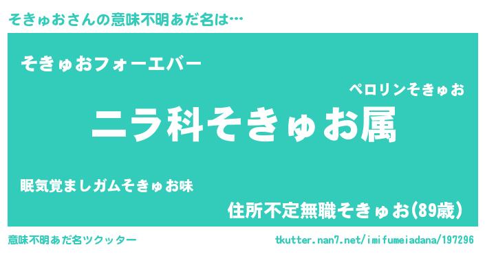| 肩書あだ名 | 『そきゅお中佐』『そきゅお総理大臣』 |