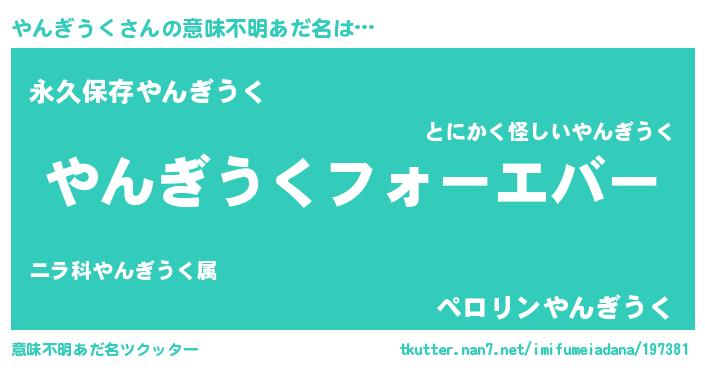 | 欧米人風あだ名 | 『やんぎうく・ステッグマイヤー』 |
