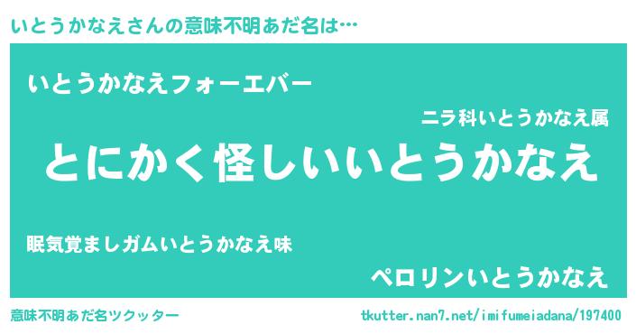 | 胡散臭い通販商品みたいなあだ名 | 『伝統あるサプリメント…その名も「いとうかなえ」』 |