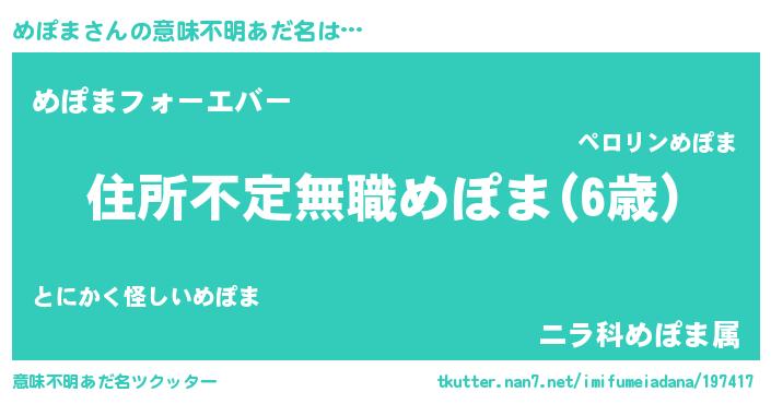 | ポケモン風あだ名 | 『メーポイ』『メポゴンZ』 |