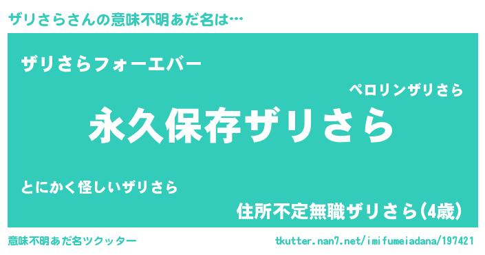 | ヒーロー風カッコイイあだ名 | 『ネオザリサラ』『ウルトラザリさらマン』 |