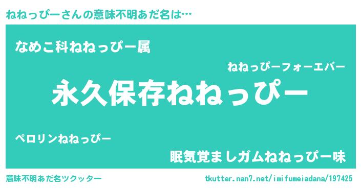 | ヒーロー風カッコイイあだ名 | 『ネオネネッピー』『愛の使者ねねっぴー』 |