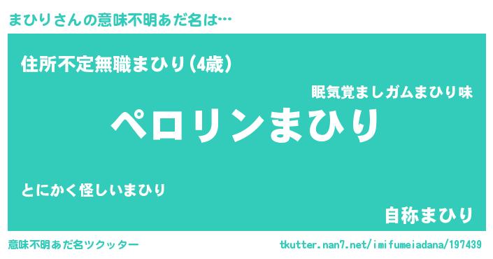 | ヘコむあだ名 | 『まひふぇ~』『まひお』『レバニラ』 |