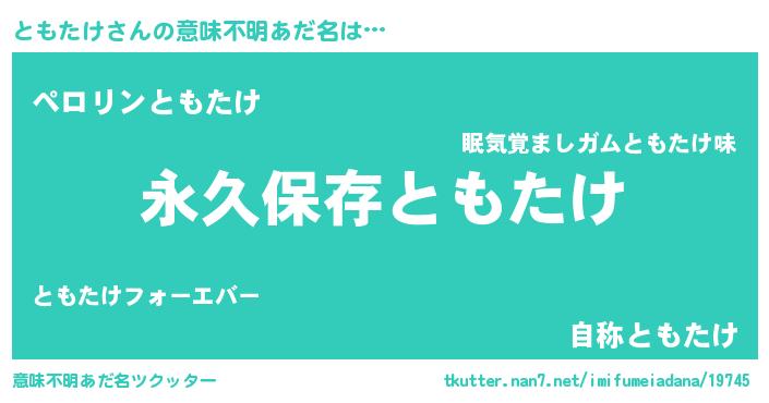 | 男性向けラノベタイトル風あだ名 | 『ともたけという概念が存在しない退屈な世界 』 |