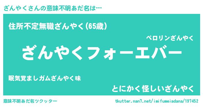 | 女子向けラノベタイトル風あだ名 | 『ざんやくの雑貨屋さん』 |