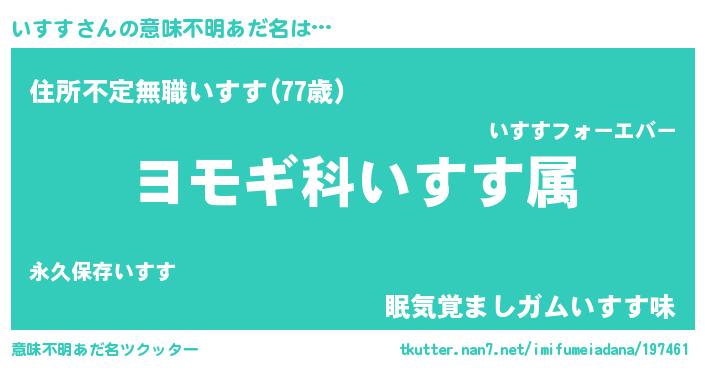 | 男性向けラノベタイトル風あだ名 | 『いすす~年齢イコール彼女いない歴の魔法使い~』 |