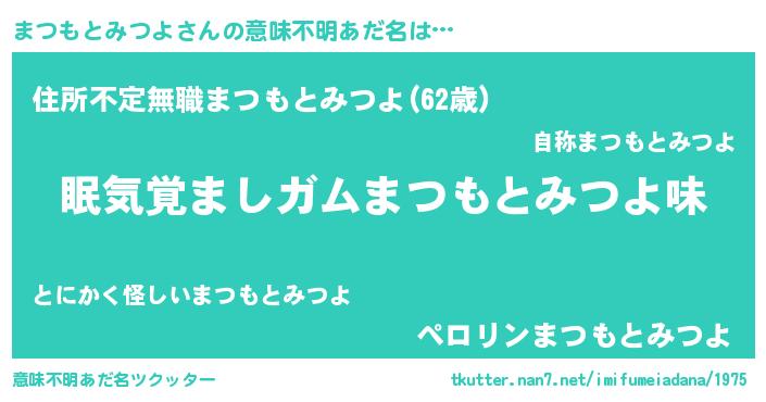 | 胡散臭い通販商品みたいなあだ名 | 『100人中100人が認めたマグネット磁石…その名も「まつもとみつよ」』 |