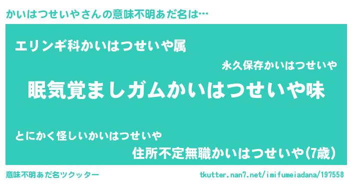 | ヘコむあだ名 | 『かいはつせいや(遠い目)』『かいを』 |