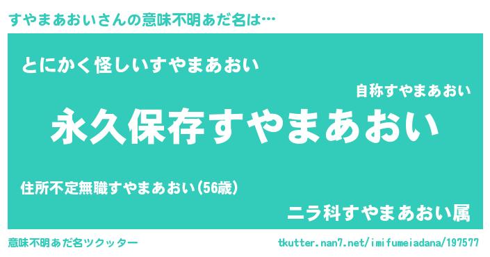 | 男性向けラノベタイトル風あだ名 | 『すやまあおいという概念が存在しない退屈な世界 』 |