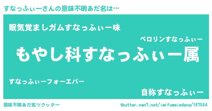 | 男性向けラノベタイトル風あだ名 | 『転生したらすなっふぃーだった件』 |