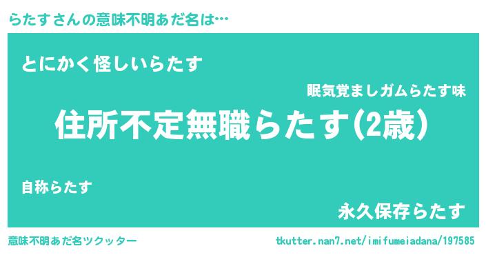 | ポケモン風あだ名 | 『ラータイ』『ヒラタス』『ゼニラタ』 |