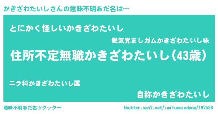| 料理風あだ名 | 『かきざわたいしのカルパッチョ風』 |