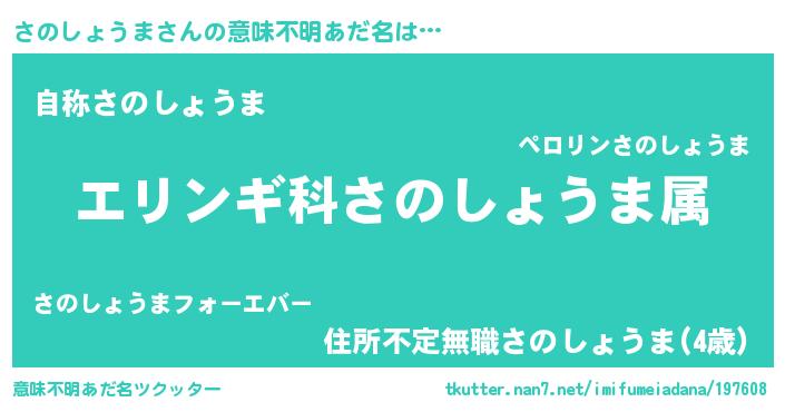 | 欧米人風あだ名 | 『トリンドルさのしょうま』 |