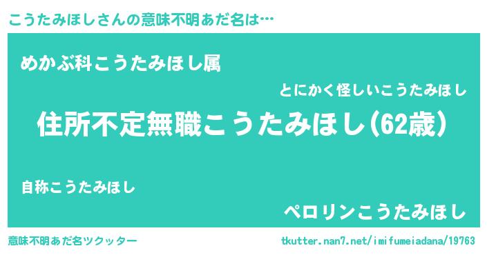 | 男性向けラノベタイトル風あだ名 | 『この素晴らしい世界にこうたみほしを!』 |